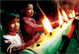 sama ader pelita, lampu warna-warni dan kerlipan bunga api...